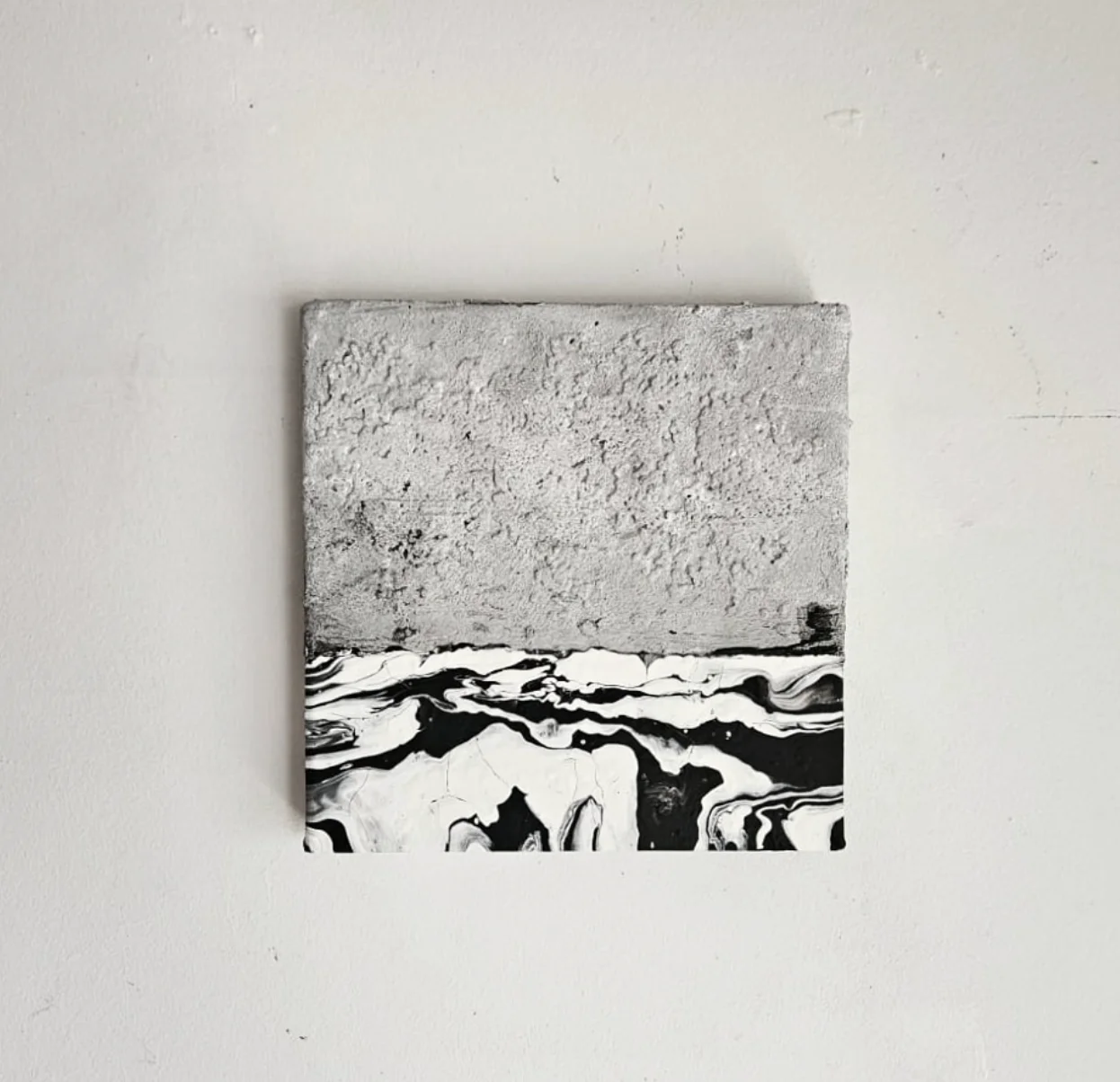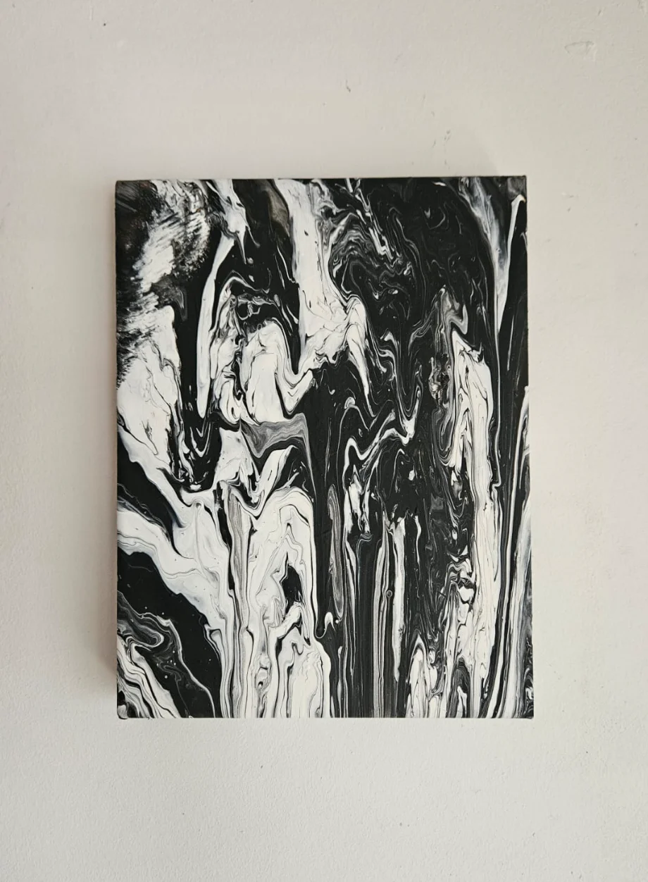 Mariana Poleo (Venezuela) es estudiante de Artes Visuales en Buenos Aires. Su práctica se desarrolla en el campo de la abstracción y el figurativismo, bajo una paleta de colores reducida y acromática donde las tensiones del contraste funciona como eje constructivo. Su trabajo se destaca por el uso del negro como recurso de elegancia estética, aportando una profundidad que estructura su universo visual. La propuesta de Poleo surge de una convergencia de intereses vinculados a las tendencias modernas en diversas ramas artísticas, con los que intenta crear un ambiente donde el observador pueda reconocer estados de inmersión. Estos elementos confluyen en un punto de arte conceptual, donde diferentes expresiones se encuentran para crear nuevos conceptos que representan la modernidad. A través de la técnica del arte fluido, la artista permite la intervención de elementos naturales para generar patrones sobre el lienzo. En este proceso las texturas resultantes actúan como improntas incontrolables que transportan la obra hacia diferentes planos perceptivos. Este método de trabajo está ligado a un estado de introspección y goce donde el control del espacio lógico cede ante un trance similar al de las atmósferas sonoras, asimilando tensiones auditivas con tensiones visuales. En última instancia, la obra de Mariana busca que los espacios generados en el lienzo hablen de un "más allá", desde una sensibilidad contemporánea.